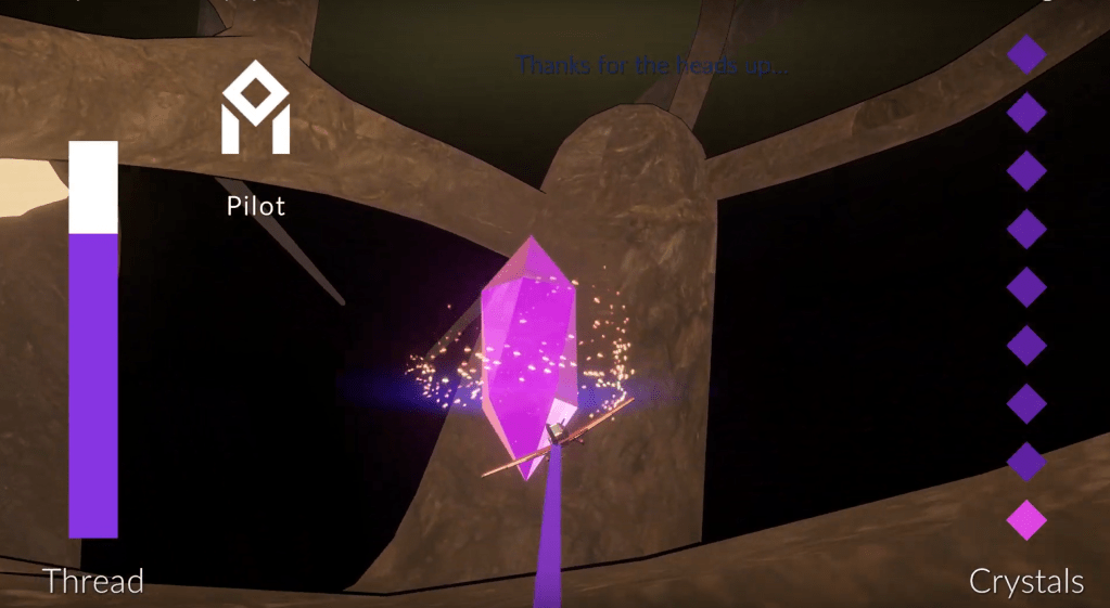 - Each thread has a length (resource) that drains the farther you fly. If the resource runs out, the thread breaks. You must reach the next crystal before the thread breaks or else you have to start over. The locations of the crystals are not indicated to the player at the start, and must be found by exploring the world.