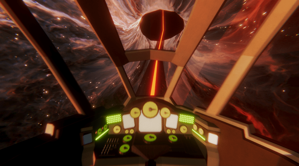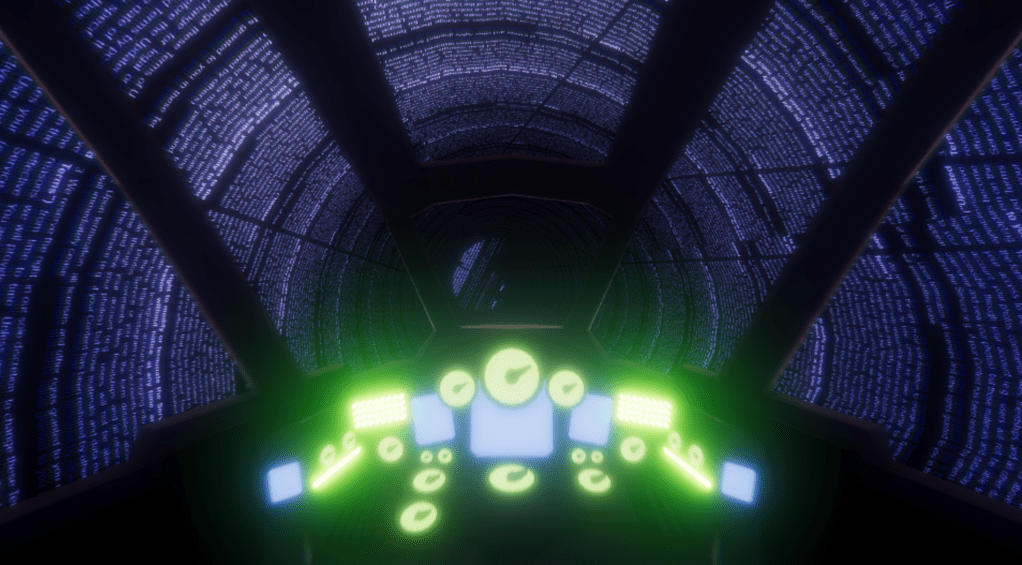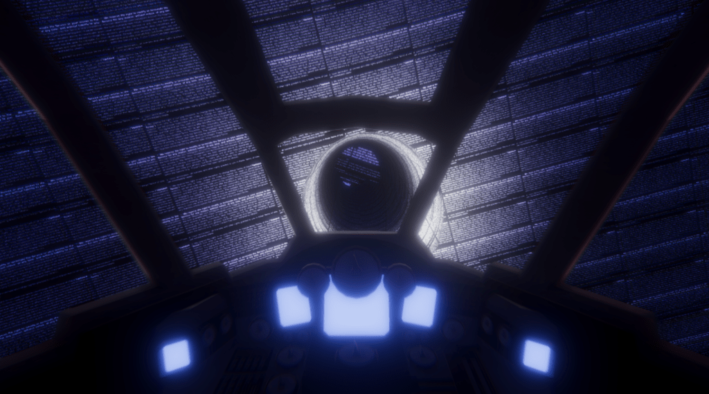 You find yourself in a cozy airplane hanger, seated in a cockpit. As you attempt to start your flight, a glowing cave fades in around you. You go through the standard flight checks, testing your controls, and begin to glitch through overwhelming and disorienting spaces. Terms and conditions fly by you, the love you’ve never had is advertised – demanded – of you, your interests are weaponized in your workplace, and you’re forced to see visceral vulnerability. Finally, space seems to collapse onto itself, threatening to overpower you, but you find yourself flying into a never-ending void. Will you end your terminal connection?
